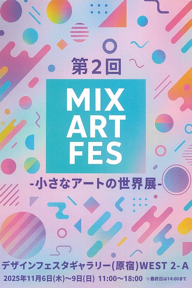> WORKS 過去の実績 > 第2回MIX ART FES -小さなアートの世界展- 2025.11.09美術展覧会企画第2回MIX ART FES -小さなアートの世界展- 一覧へ戻る 2025年11月6日(木)~11月9日(日) デザインフェスタギャラリー(原宿)WEST 2-A 一覧へ戻る PAGETOP